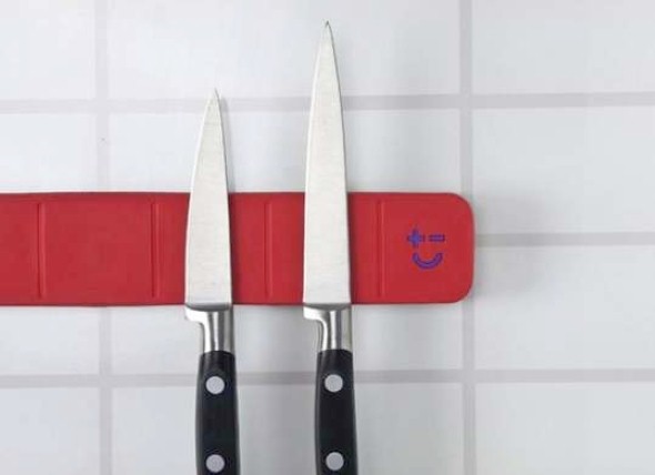 O legal do uso de imãs é que eles oferecem bom suporte, e podem ser instalados de várias maneiras, facilitando assim seu uso para apoio das facas aí na cozinha de sua casa.