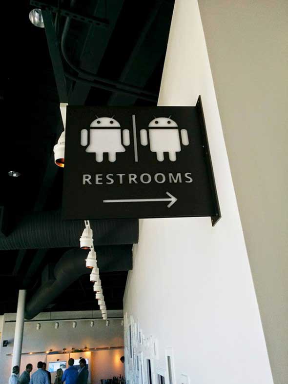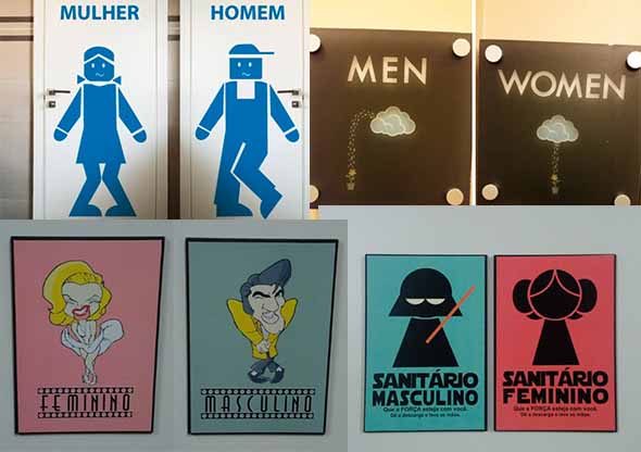 Mas há lugares que inovam na utilização destas placas, e desta forma acabam deixando a ida aos banheiros muito mais divertida.
