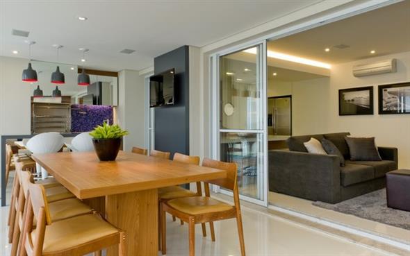 Já para montar uma varanda gourmet, o uso de cadeiras e uma mesa são essenciais, e vai proporcionar um local ideal para aquele almoço em família nos finais de semana.
