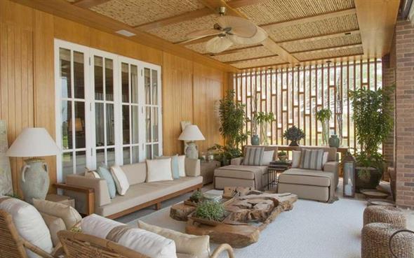Ou para quem tem uma varanda mais ampla, como em uma casa de campo, pode optar por montar uma verdadeira sala de estar no local, com poltronas e um sofá bem confortáveis, e o local vai ficar muito mais convidativo e agradável.
