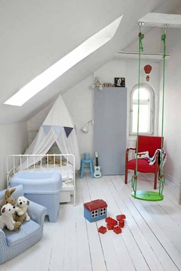 No quarto das crianças o balanço vai deixar o ambiente mais divertido, principalmente para quem mora em grandes cidades e não tem um parquinho próximo para brincar.