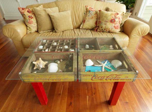 Modelos de mesas feitas com paletes e caixotes de feira