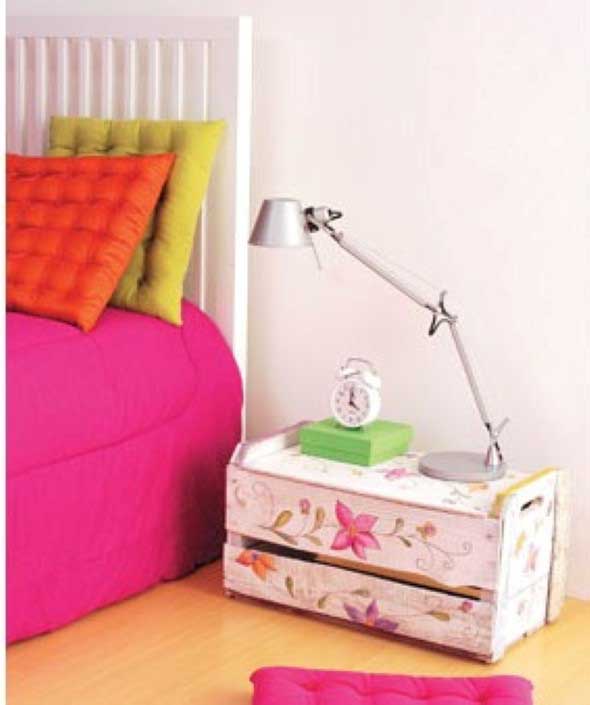 Neste outro vídeo vocês aprendem como fazer uma mesinha para deixar ao lado da cama, com as dicas da vlogueira Jessika Taynara, que mostra o passo a passo para fazer a mesinha com o uso de um caixote de feira e cabos de vassoura: