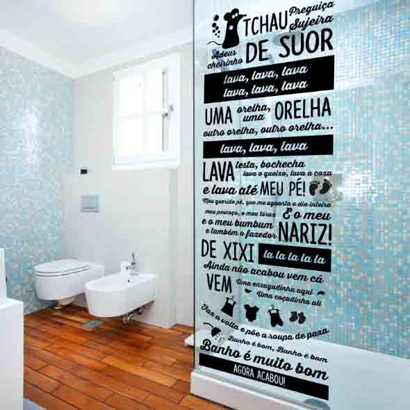Nossa última ideia é o uso dos adesivos personalizados, que podem ser usados nas paredes, no azulejo, no vaso, na banheira e até mesmo para renovar o Box, e de maneira bem simples revitalizarão a decoração.