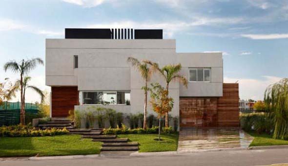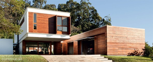 O uso de painéis de madeira é outro item que contribui para elegância e charme das fachadas de casas de luxo, e são muito bem vindos em vários estilos de decoração.