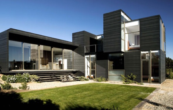 Tendência moderna para fachadas de casas de luxo com linhas retas.