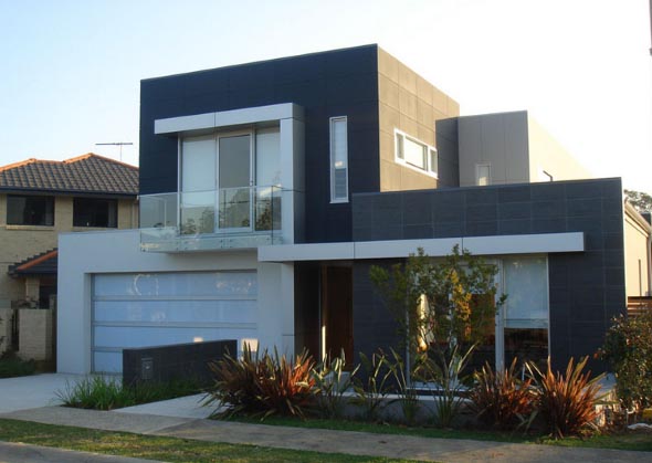 Em uma tendência mais moderna, as fachadas podem ser feitas com linhas retas e detalhes mais arrojados, como os telhados embutidos e os janelões de vidro na frente do imóvel.