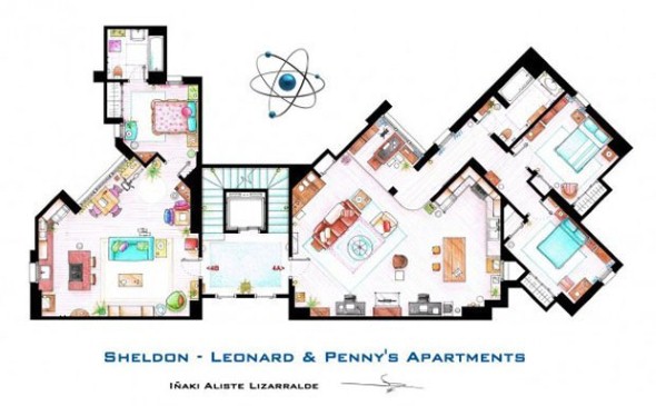 1. Planta dos apartamentos de Sheldon e Leonard, e da Penny: seriado The Big Bang Theory