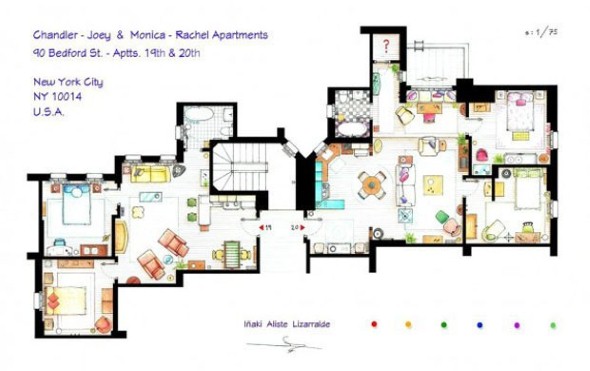 Estas plantas foram transformadas em desenhos pelo designer de interiores Iñaki Aliste Lizarralde, mais conhecido como Nikneuk, que transferiu para o papel cada detalhe de alguns dos seriados mais famosos dos anos 90, e também de alguns mais atuais.