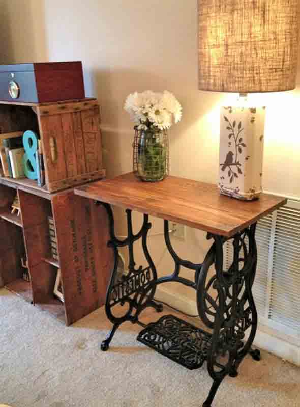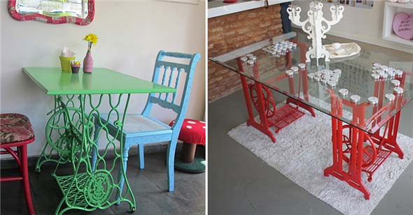 Idéias para usar mesa de máquina de costura antiga na decoração