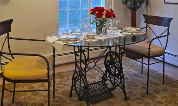 Mesa de máquina de costura antiga na decoração 003