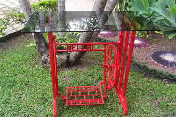 Mesa de máquina de costura antiga na decoração 014