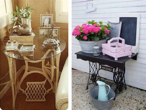 Modelos de mesas de máquina de costura antiga na decoração