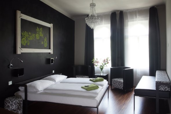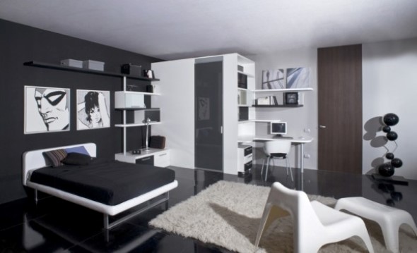 Uma opção para uso do preto e do branco na decoração do quarto é a pintura das paredes, que pode ser feita apenas em uma cor, e com detalhes singelos em outra cor (paredes em preto com batentes e rodapés brancos é um bom exemplo).