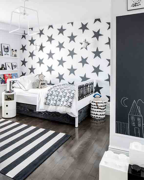 E até no quarto das crianças o uso do preto e branco vai trazer beleza e elegância ao local, de uma maneira simples e bem prática.