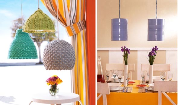 Tem também as luminárias artesanais, que são feitas com o uso de materiais usados no dia a dia, e que combinam com cada cômodo aonde são usadas.