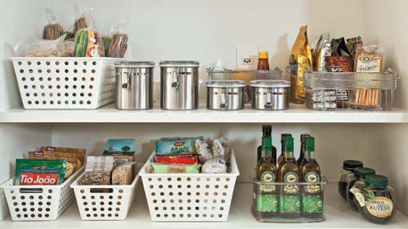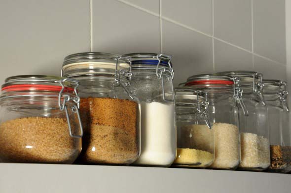 Já para guardar alimentos de uso diário, como grãos, farinhas, açúcar ou sal, dentre outros, a dica é o uso de potes, de preferência os de vidro, que não transmitem cheiro e ainda conservam os alimentos por mais tempo.