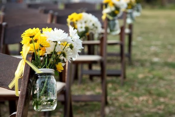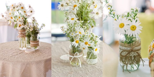 Uma das primeiras ideias DIY para fazer a decoração de casamento aí na sua casa é investir em vasinhos(potes) para as flores, que são fundamentais em todo casamento, e ajudam a enfeitar e perfumar a cerimônia e a festa.