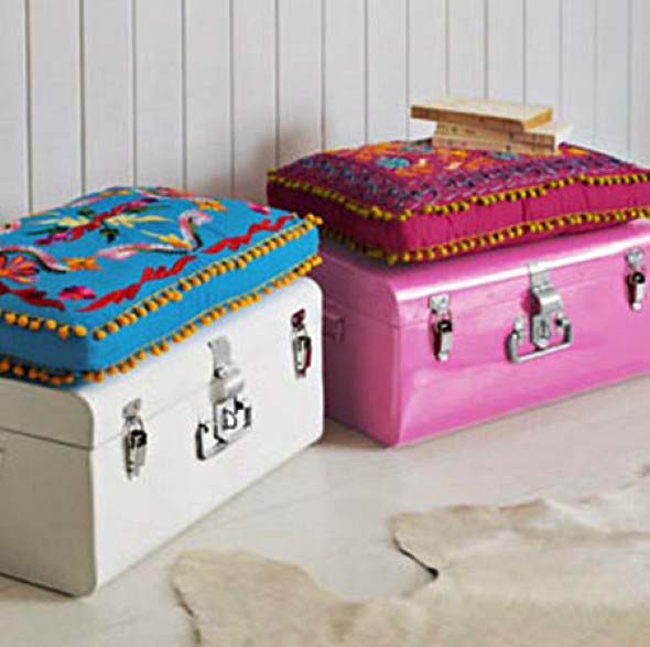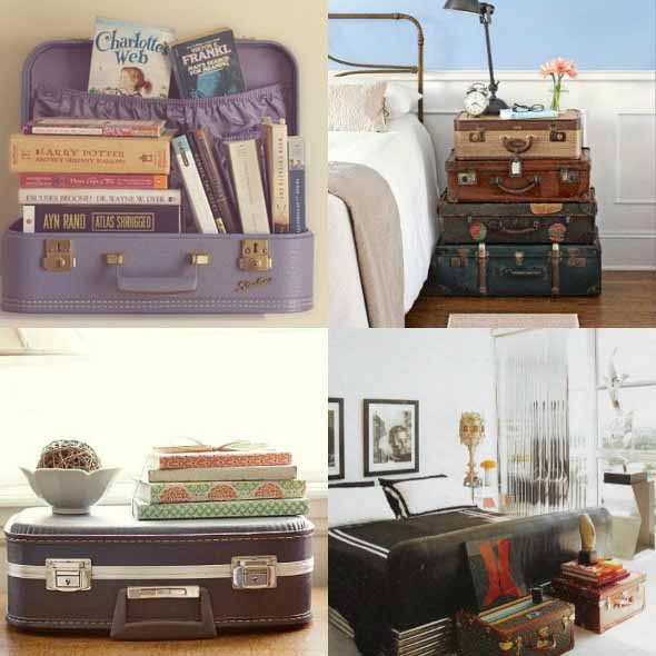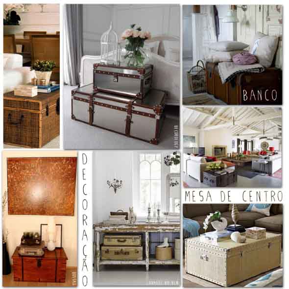 E abaixo vocês conferem mais alguns modelos de baús e malas antigas, que se tornaram lindas peças de decoração: