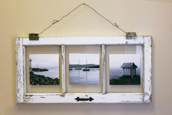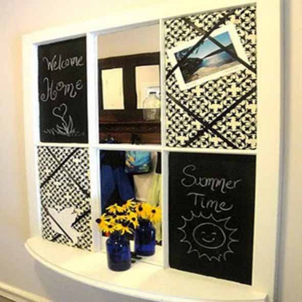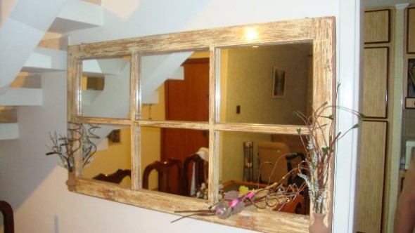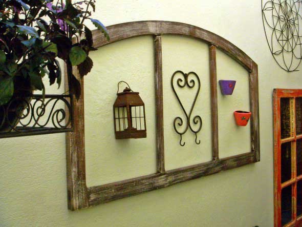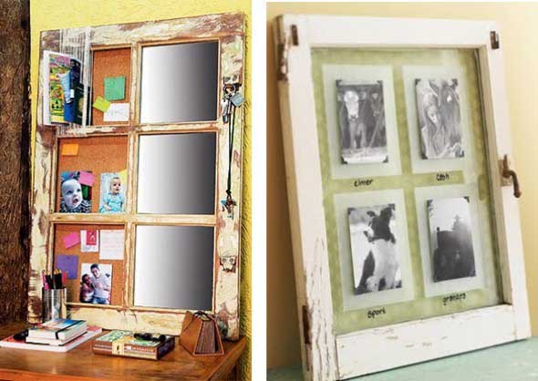 Uma boa opção para reciclar janelas e venezianas antigas é transformá-las em molduras para espelhos, fotos e imagens, que vão ter um lugar todo especial para serem exibidas nas paredes.