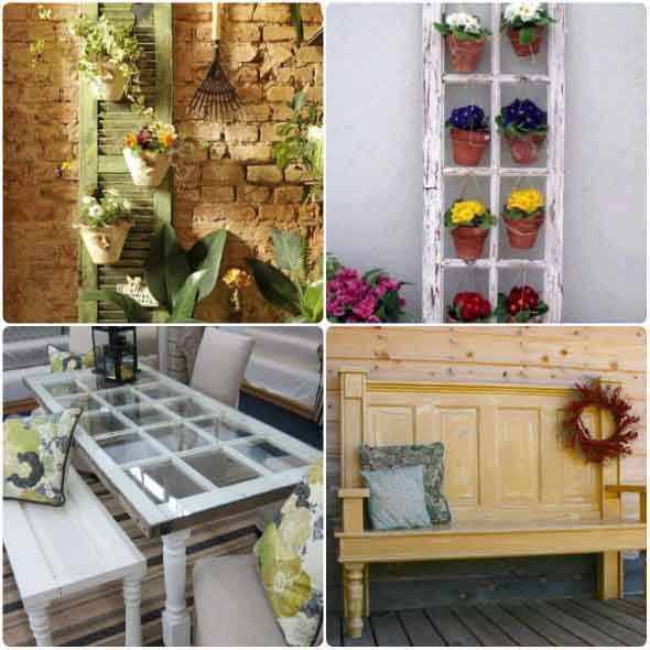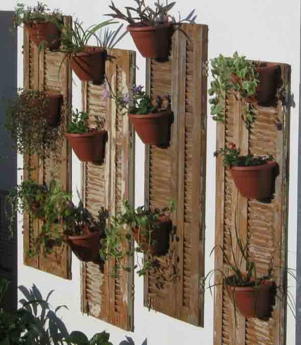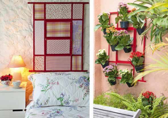 Outra opção é a montagem de jardineiras e jardins verticais, que ficarão muito mais charmosos com o uso de uma janela ou veneziana reciclada.