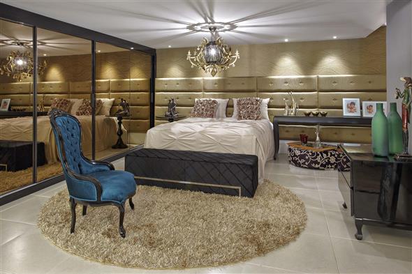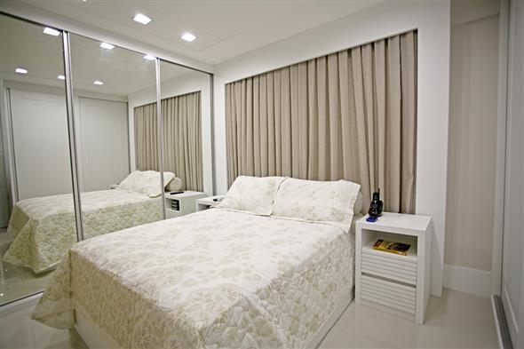 Para o quarto do casal uma boa opção são os guarda-roupas com espelho na porta, que além de charmosos, ainda transmitem a sensação de amplitude ao ambiente.