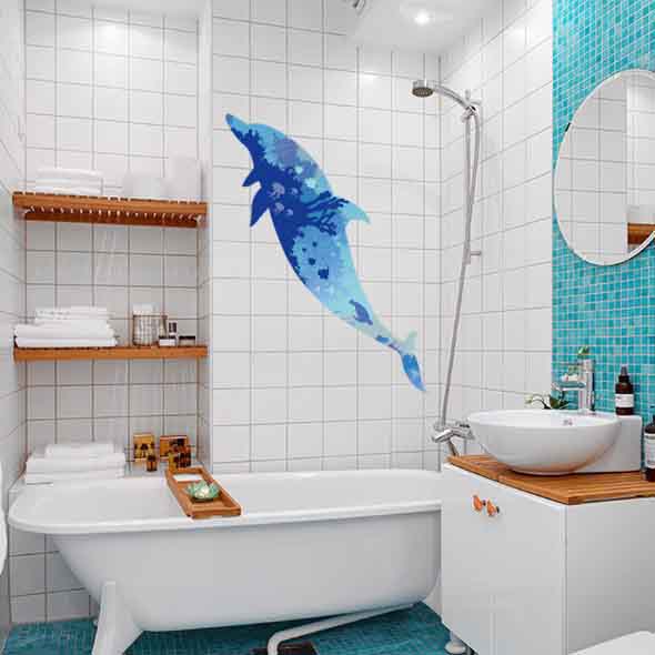 Até mesmo no banheiro o uso de silhuetas na decoração é uma boa alternativa, e que vai deixar o local com um estilo mais convidativo.