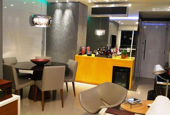 Outra combinação de sucesso é o uso de cores escuras, e objetos ou detalhes da decoração em amarelo, pois a cor vai dar aquele destaque visual todo charmoso, e muito mais convidativo.