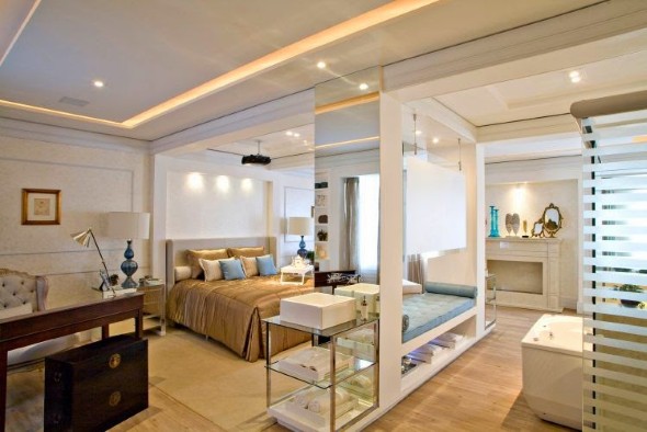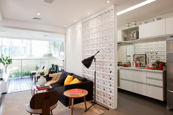 Há também os imóveis que são projetados sem paredes internas, e nestes casos a divisória entre cada ambiente pode ser feita com o uso de cortinas, um móvel central, ou até mesmo uma tonalidade diferente em pisos ou azulejos.