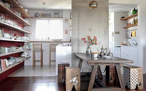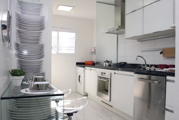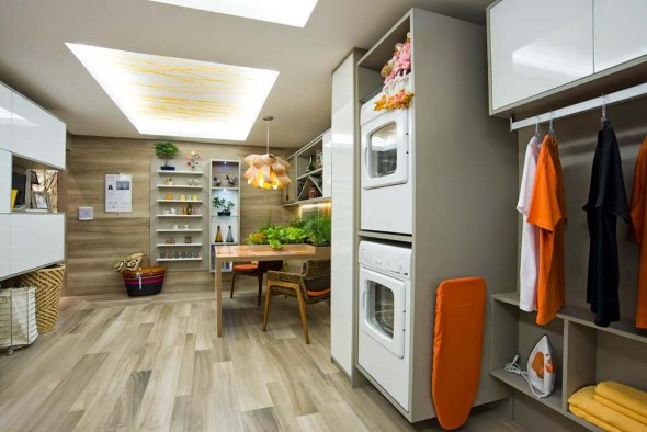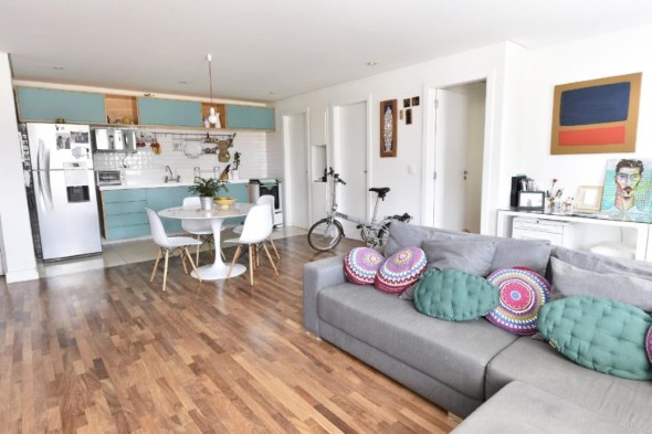 Em outros casos a interação entre os móveis contribui para um maior aproveitamento do espaço interno, como no caso de salas de estar integradas com a varanda, ou uma cozinha mesclada com a área de serviço.