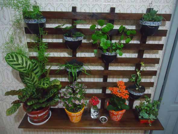 Este jardim vertical pode ser montado em vários ambientes da casa, como a varanda, a cozinha ou mesmo o quintal, em um espaço reduzido, e com isso podem ser usadas plantas variadas, como as flores e também os temperos para cozinha.