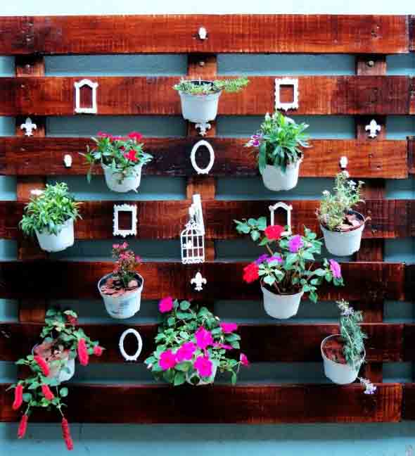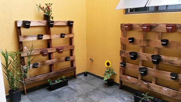 E abaixo vocês conferem mais alguns modelos de jardim vertical feito com o uso de paletes, que vão lhes trazer muitas ideias para montar seu jardim vertical em casa: