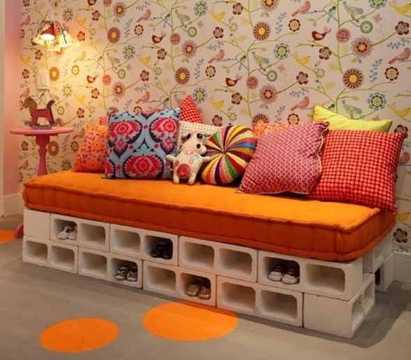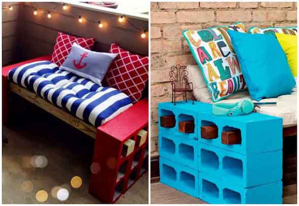 Aliado a isto, os blocos de concreto podem ser usados de uma forma mais criativa, através da montagem de bancos, que podem ser usados dentro ou fora de casa, permitindo assim a criação de um espaço aconchegante e bem convidativo para diversas ocasiões.