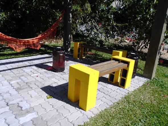 E abaixo vocês conferem mais algumas imagens, que mostram mais alguns modelos de bancos feitos com o uso de blocos de concreto: