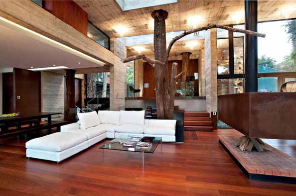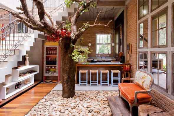 E esta paixão pela natureza algumas vezes acaba sendo levada para dentro de casa, aonde a árvore passa a ser o centro das atenções em cada ambiente, de uma forma harmoniosa e totalmente incorporada na decoração.