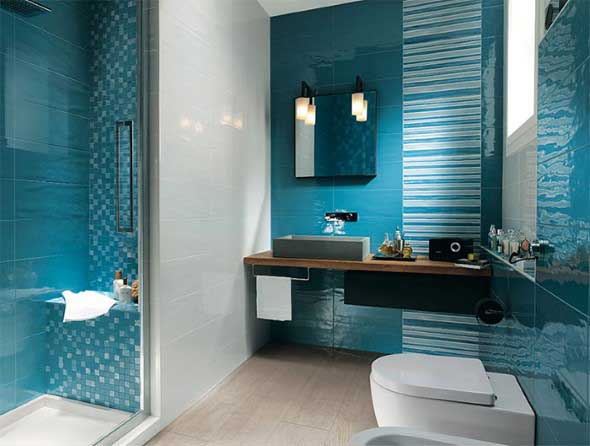 Uma das primeiras ideias para deixar o banheiro mais colorido é focar nas paredes, que podem ser pintadas, ou decoradas com inúmeros modelos de revestimentos coloridos, como cerâmicas, porcelanatos ou pastilhas de vidro.