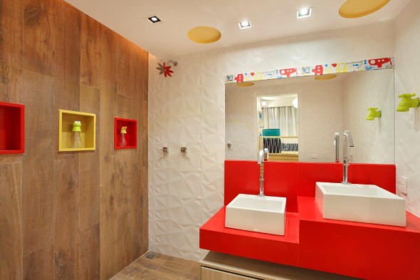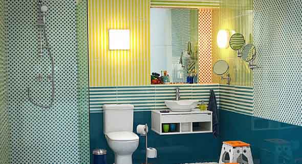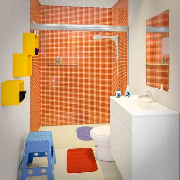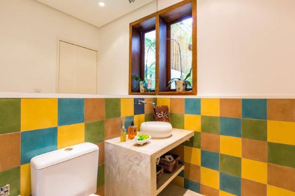E abaixo vocês conferem mais algumas imagens, que mostram mais alguns banheiros com uma decoração bem colorida: