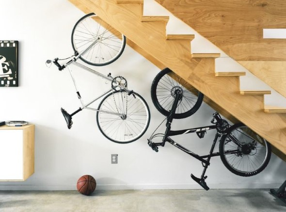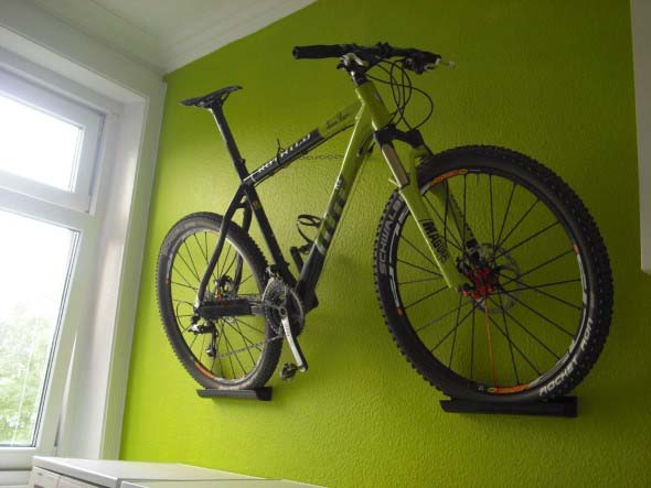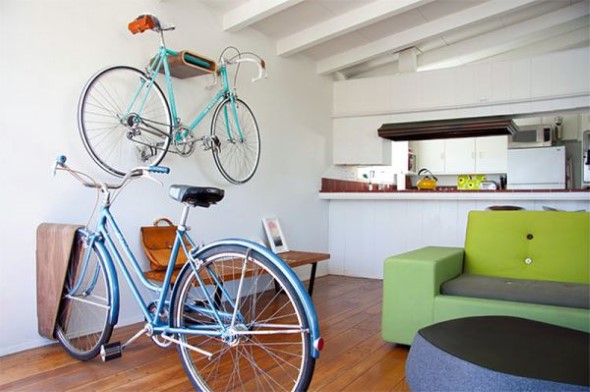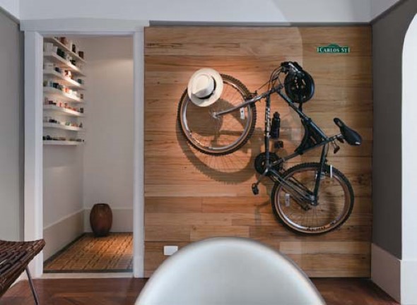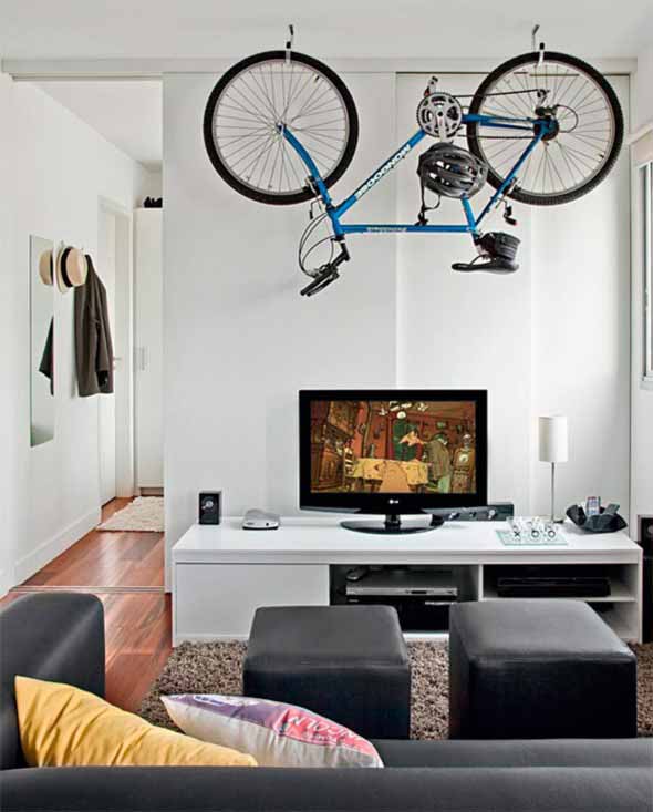 Para isso, uma das primeiras opções é o uso de suportes de parede para colocação de bicicletas, que servem para deixar a bicicleta fixa em um ponto da casa, que agora pode ser a sala de estar ou o quarto do casal.