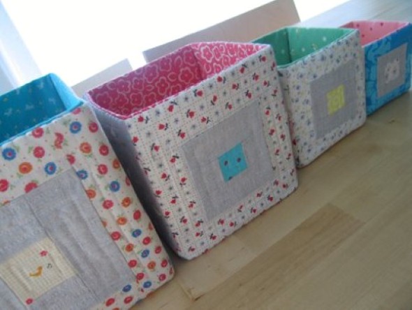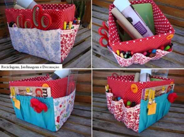 Além do tecido, vocês podem forrar sua caixa de papelão com o uso de papel para scrapbook, EVA, papel contact, papel de presente, dentre outros, e com isso ter inúmeras opções para decorar sua caixa organizadora.