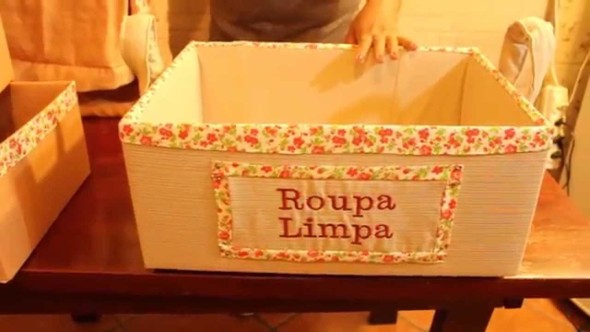 No vídeo a artesã mostra todo o passo a passo para montar a caixa, e também para forrá-la com o uso de tecido, que garante um visual encantador, e também mais durabilidade ao papelão.