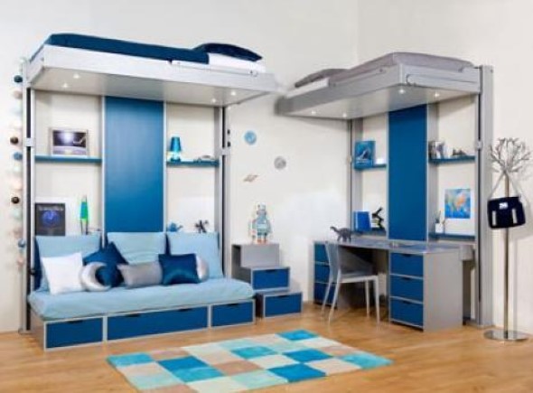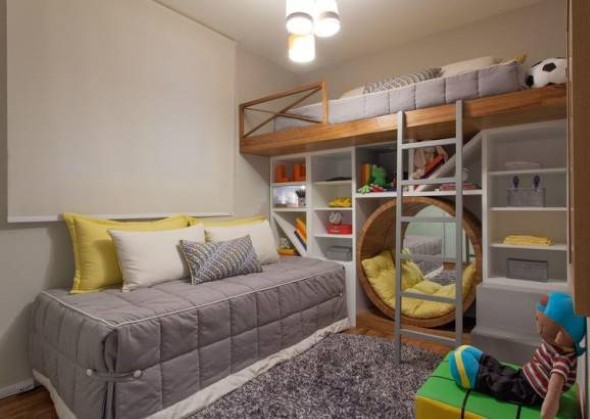 No quarto das crianças este estilo de camas elevadas também pode ser incorporado na decoração, e vai garantir mais espaço para todos os filhos em um mesmo ambiente.