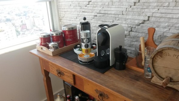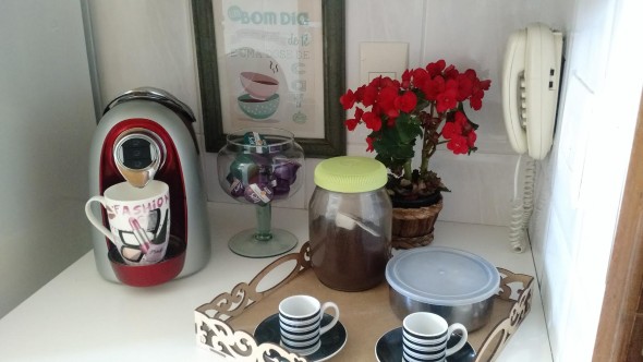 No local pode ser colocada uma máquina de café automática, que é muito utilizada atualmente, e permite que cada um sirva seu café predileto em poucos minutos.
