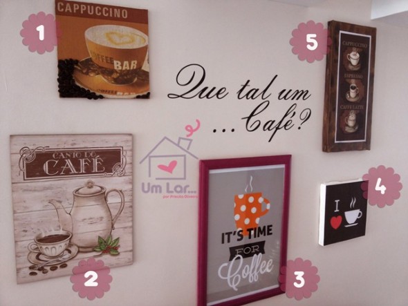 Já para montar a decoração podem ser usados quadros, potes com grãos torrados, cafeteiras antigas, xícaras diferentes, dentre outros itens que remetam ao universo maravilhoso do café.