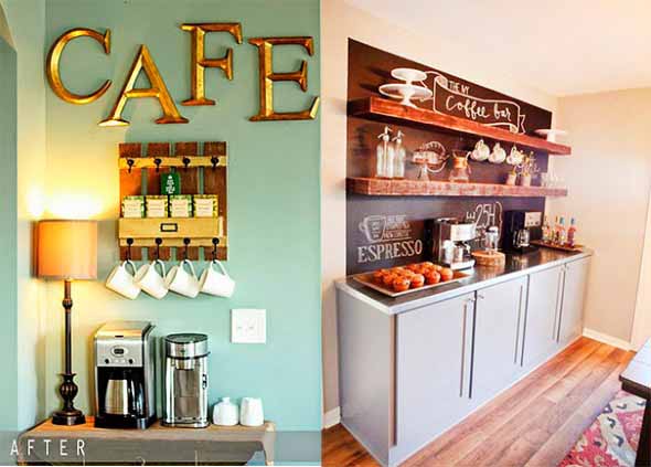 E abaixo vocês conferem mais algumas imagens, que mostram como ter um belo cantinho decorado em casa, que é ideal para quem gosta e deseja apreciar todas as vantagens de um bom café: