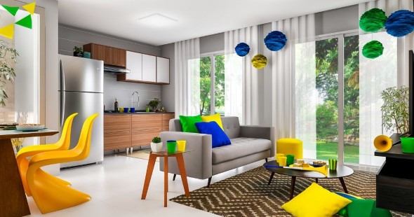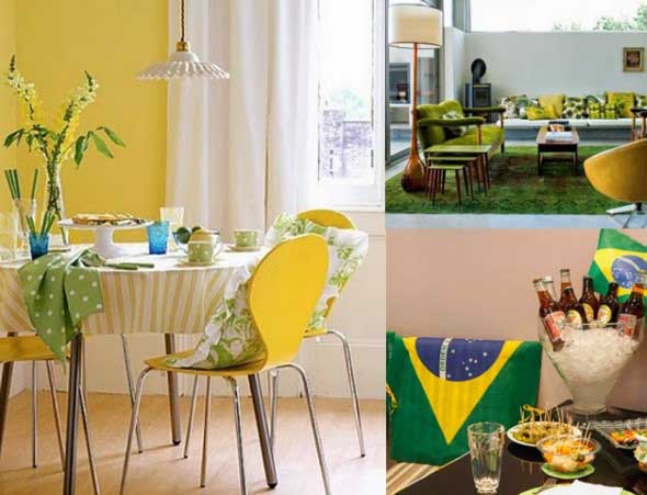 Outra opção é a decoração de interiores inspirada nas cores do Brasil, que na época da Copa do Mundo se torna muito mais charmosa e convidativa.