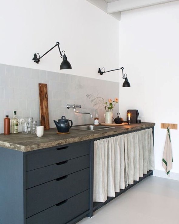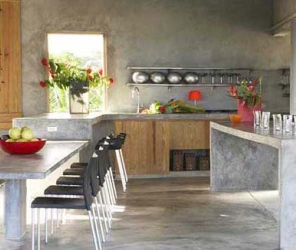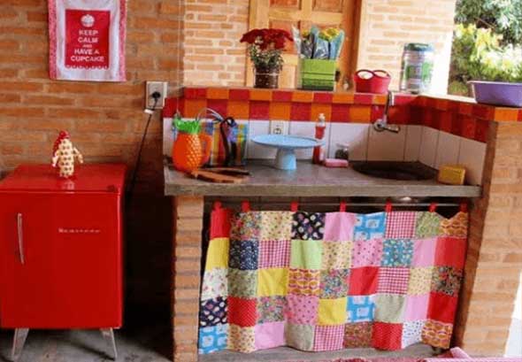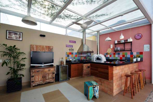 Também é possível investir paredes sem reboco, pisos de barro, revestimentos de pedra, paredes com cimento queimado, e outros objetos que garantem o acabamento rústico nas paredes ou no chão da cozinha.
