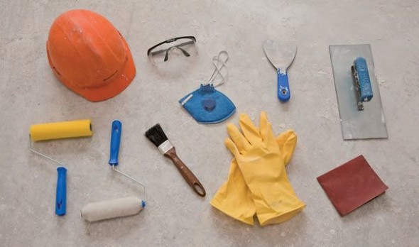 • Durante as etapas de aplicação, use a proteção adequada, e também roupas mais velhas e que cubram boa parte do corpo, para evitar reações alérgicas ao pó da massa;
