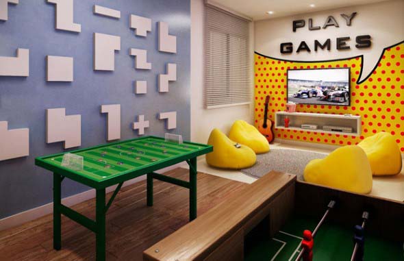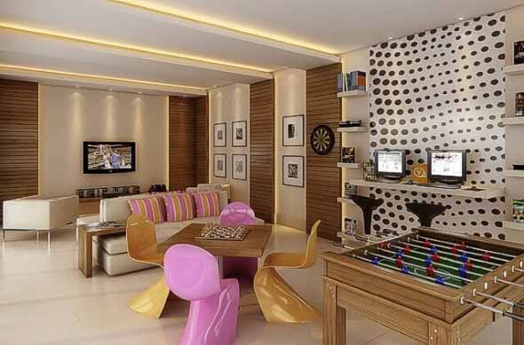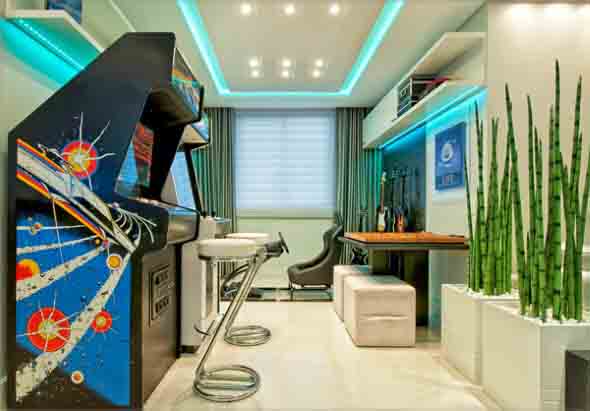 E para lhes trazer mais ideias de decoração, confiram abaixo estas imagens, que mostram salas de jogos em casa: