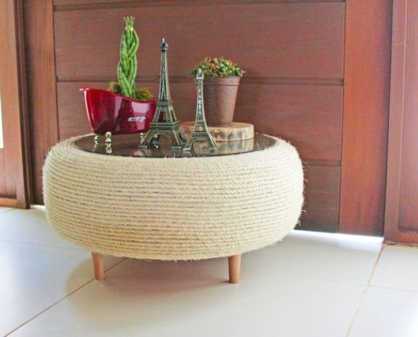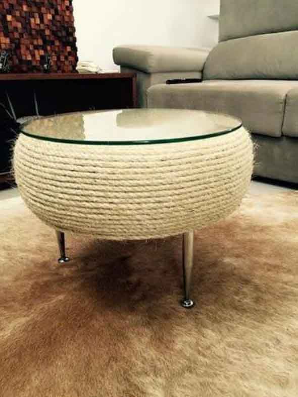 E um destes móveis que vem fazendo sucesso é a mesa feita com pneu usado, que pode ser feita em vários modelos, e depois pode ser muito útil na sala de estar, no quarto, na varanda e em diversos ambientes pela casa.