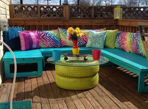 E para lhes trazer mais inspiração, separamos abaixo mais alguns modelos de mesas feitas com pneu usado, que são charmosas e bem criativas: